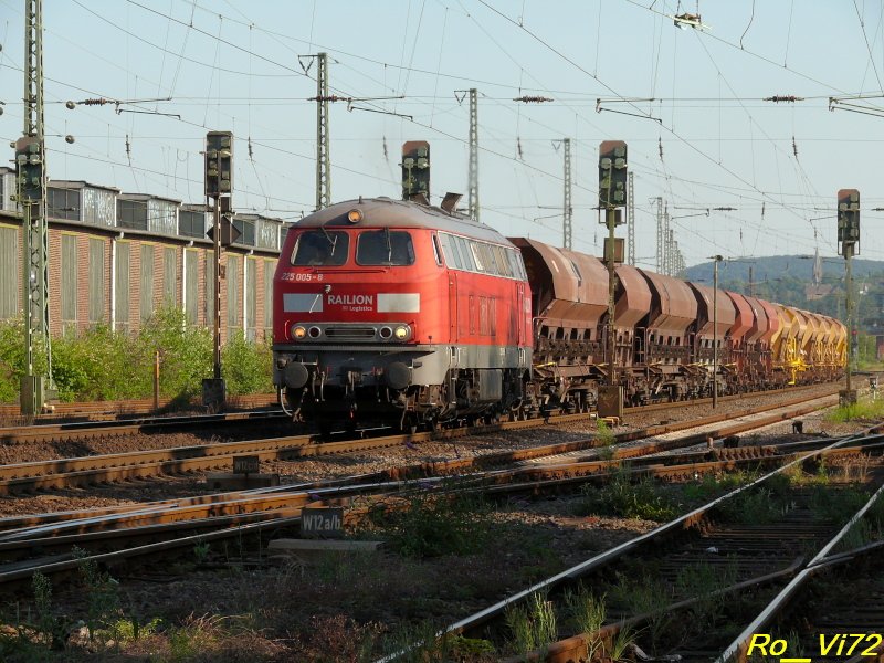 225 109-8 und 225 005 mit leere Wagen für Blechrollen am Bü