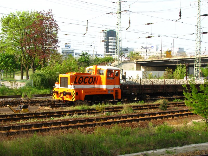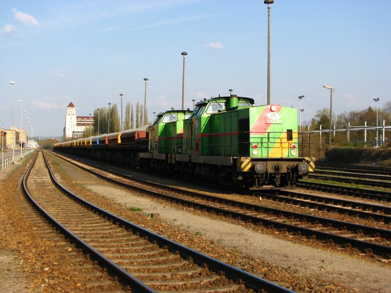 293.01 und 293.02 der ITL mit Selbstentladewagen stehen im Dresdner Alberthafen.04.05.08.