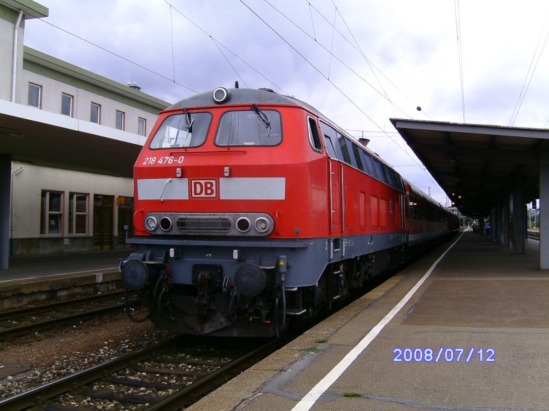 Die gleiche Position wie bei meinem Bild vom 16.3.2008 in Heilbronn Hbf. Diesmal ist es aber am 12.7.2008 218 476-0 die sich in Kürze auf den Weg in Richtung Heidelberg über Sinsheim machen wird.