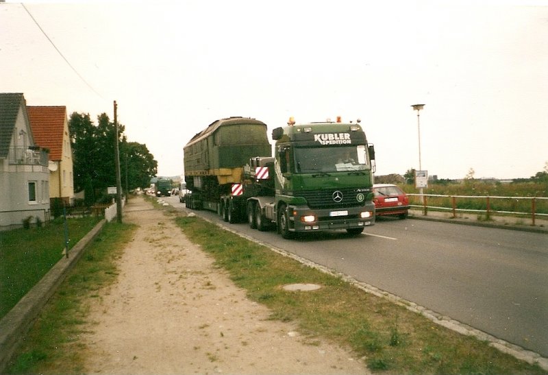 Die WAB erwarb im Sommer 1999 einige russische Breitspur 132ziger.Diese wurden im Eisenbahnmuseum Prora auf Normalspur umgespurt und gelangten dann ins Hauptbw nach Altenbeken.Hier habe ich die Überführung nach Prora bei der Ausfahrt aus Mukran abgelichtet.
