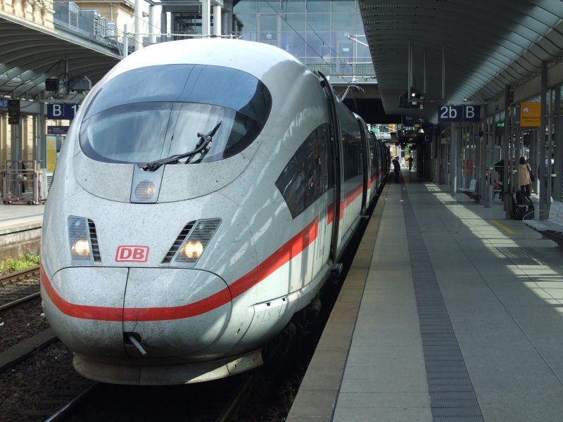 Eine Einheit der BR 403 wartet in Mainz Hbf zur Abfahrt als ICE 712 auf Gleis 2 stehend. Über Wiesbaden und Limburg Süd fahrend erreicht er dann am Ende Köln Hbf.