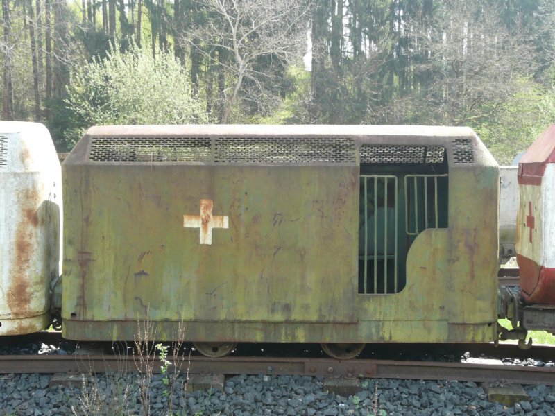 FGF - Erste-Hilfe-Grubenwagen Nr.357 Abgestellt im Areal der Feld und Grubenbahn Fortuna in Oberbiel-Sloms am 01.05.2008