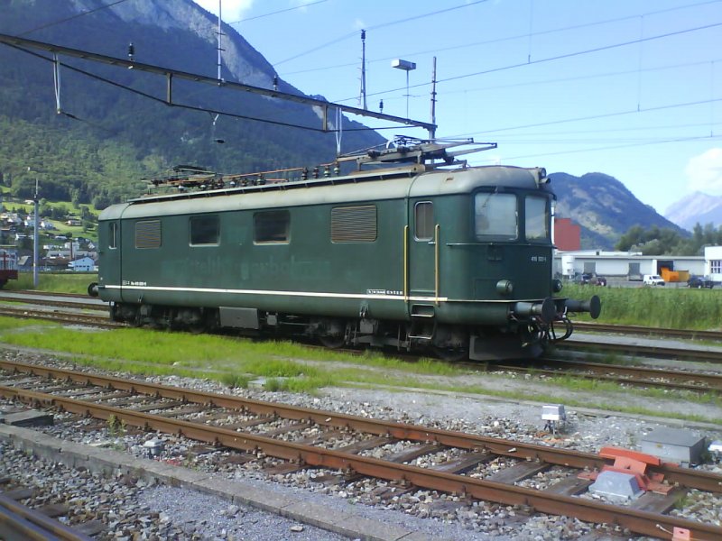 416 028-6 ex. MThB und Thurbo (gehört jetzt aber der SwissRailTraffic)steht abgestellt im Bahnhof Sargans am 25.07.08