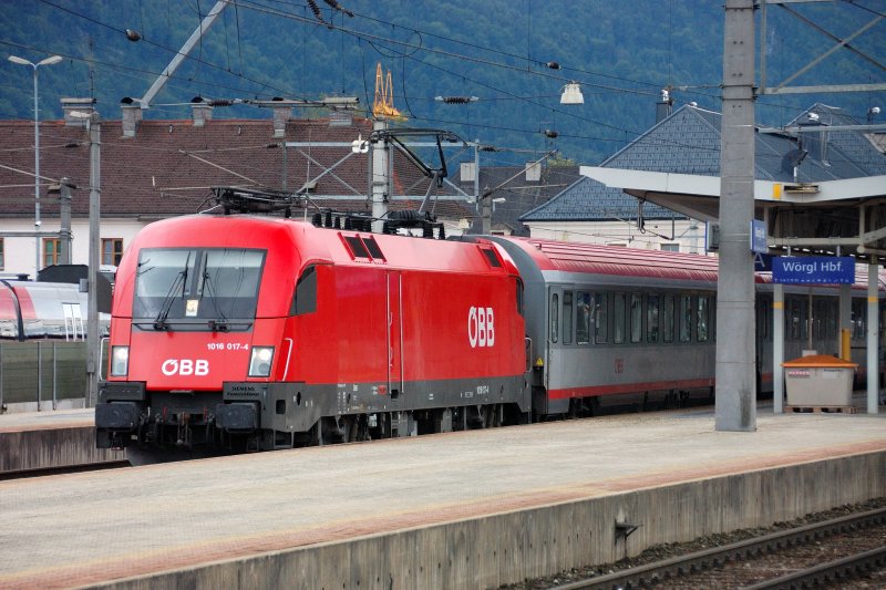 ÖBB-EC 669 "Astronomie Jahr 2009" nach Graz steht mit 1016 017-4 abfahrbereit in Wörgl Hbf. (20.07.2008)