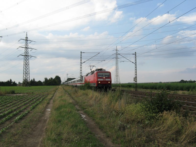 Ein IC2115 von Stralsund Hbf nach Stuttgart Hbf mit +65.Dieser Zug wurde wegen Bauarbeiten über Groß-Gerau umgeleitet.Am 29.07.08 bei der durchfahrt in Lampertheim.