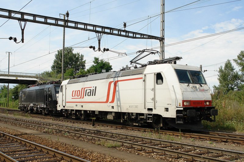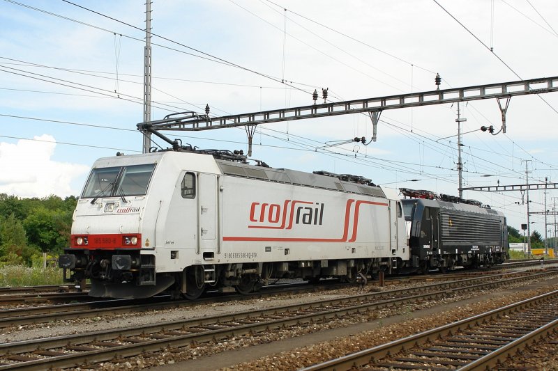 185 580 Crossrail avec ES 64F4-094 MRCE dispolok triage de Muttenz 29 juillet 2008