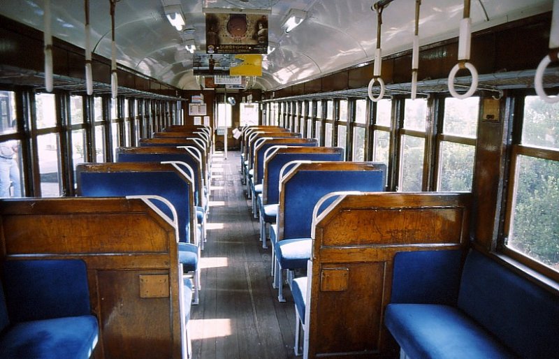 Blick ins Innere des KU-MO-HA 42 001 (クモハ42001) der einstigen Staatsbahn JNR. Im Originalzustand hat der Wagen sicher viel düsterer ausgesehen.