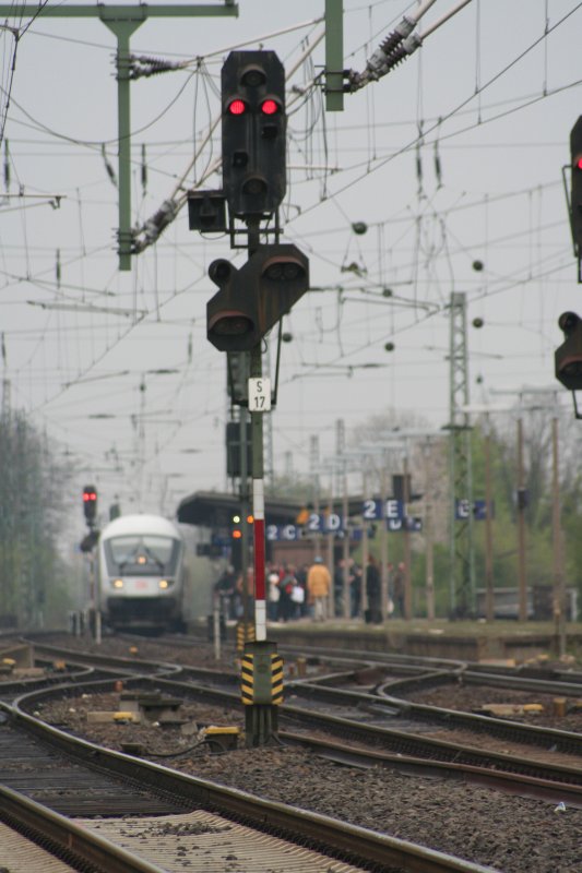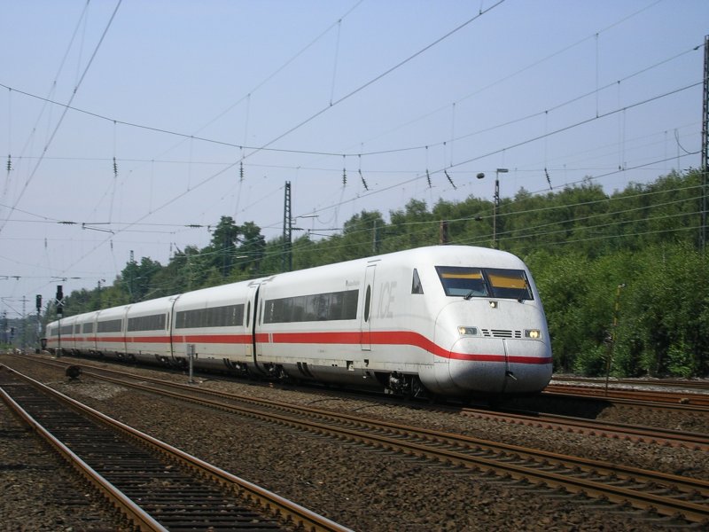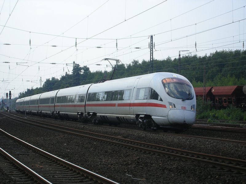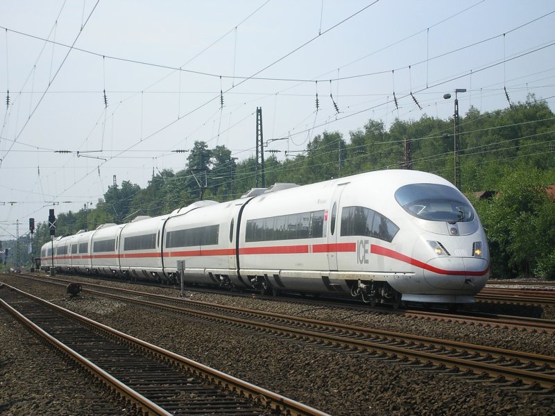 ICE3 "Wiesbaden" mit den Steuerwagen 403 511/403 011 laut Plan von München Hbf. nach Essen Hbf.,fährt dann LZ nach Dortmund in den Betriebsbahnhof zur Reinigung,danach wieder nach Essen Hbf.,wo der Zug dann wieder nach München fährt.(28.07.2008)