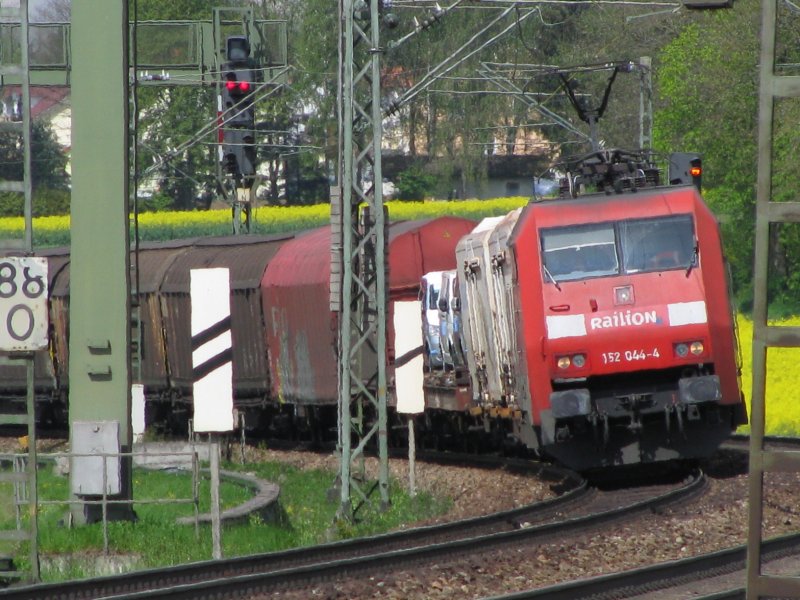 Die BR DB 152 044 -4 fotografiert am 01.06.2008 auf der Strecke vor dem Audi-Werk in Ingolstadt.