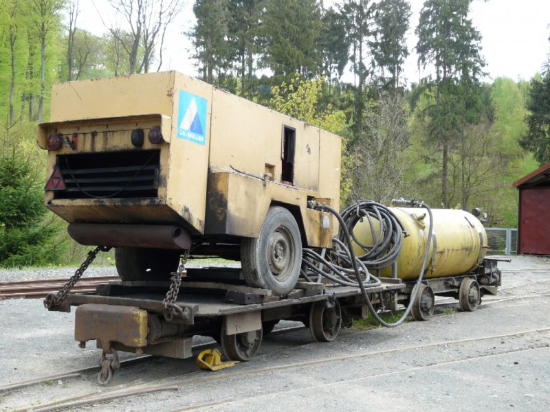 Ein selbstgebauter Kompressorwagen auf einen Lorengestell.26.07.08.