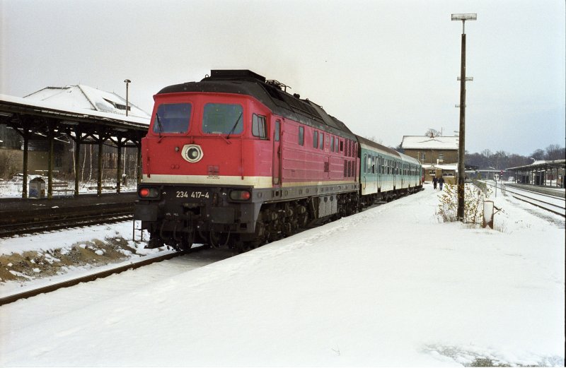 Am 18. November 1998 wartet 234417 in Arnsdorf auf die Weiterfahrt nach Kamenz mit der RB7050.