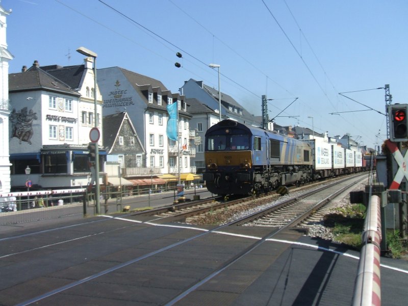 DLC Class 66 mit dem TEC 41963 von Rotterdam Maasvlakte nach Wels Vbf CCT, bei Erbach (Rheingau); 24.04.2008