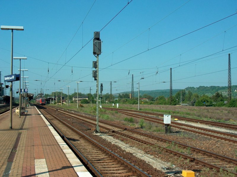 Gleis 3 und 4 in Naumburg (Saale) Hbf. Rechts erkennt man noch den Rest der ehemaligen Rangiergleise; 14.05.2008