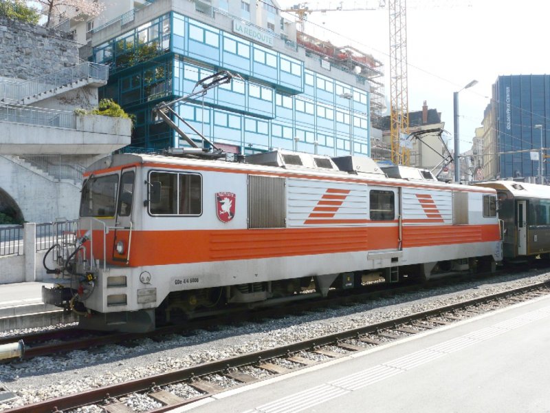 MOB - GDe 4/4 6006 (ex tpf / GFM GDe 4/4 102) im MOB Bahnhof von Montreux am 05.04.2008