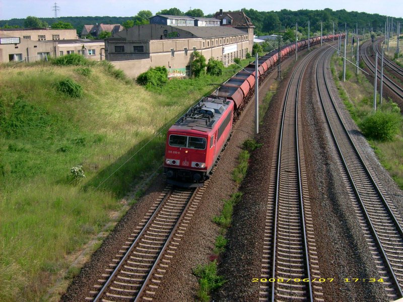 155 016 zieht am 07.06.08 einen Güterzug durch Bitterfeld. Diese Beschriftungsvariante gefällt mir doch am Besten.