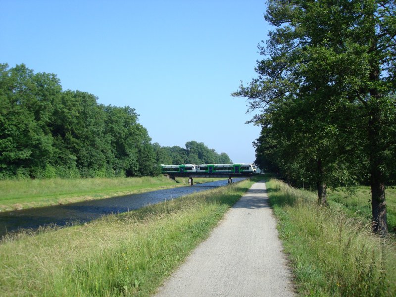 Breisgau-S-Bahn überquert die Dreisam bei Freiburg 10.06.08