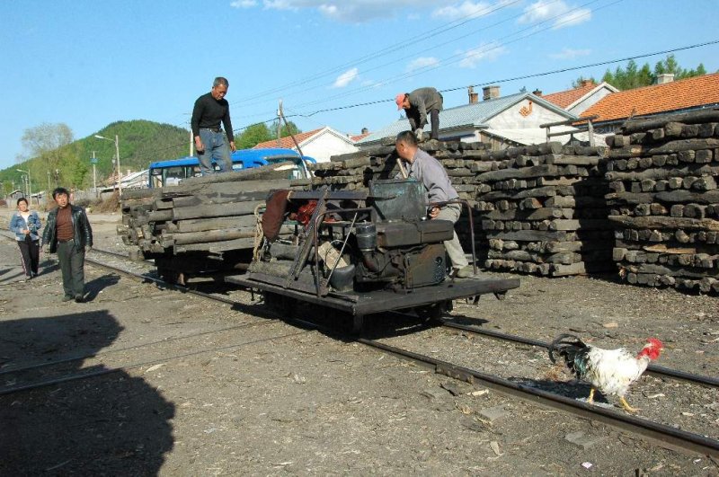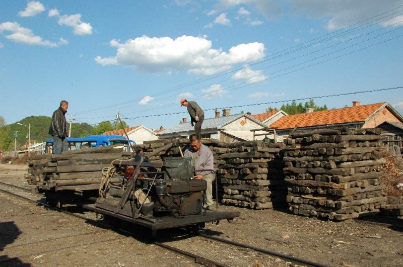 Die Draisine der Bahnmeisterei ist wieder in Tuoyaozi angekommen und wird weggestellt.