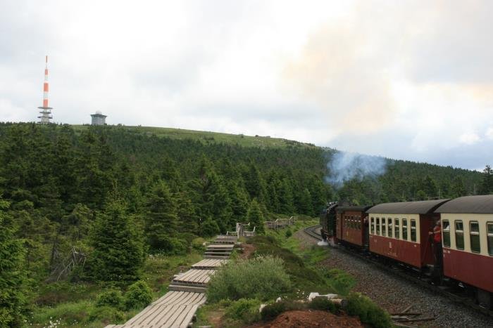 Den Gipfel vor Augen fährt der Zug in die Brockenspirale ein. Doch bis zur Endstation müssen noch einige Kohlen nachgelegt werden; 12.06.2008