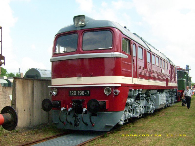 Auf dem diesjährigen Weimarer Eisenbahnfest wurde 120 198 neben der Bekohlungsanlage aufgestellt. Fotografiert am 24.05.08.