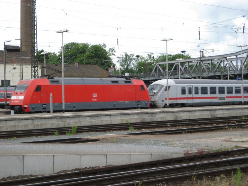 Br 101 mit kaputtem IC Steuerwagen und 45+ wegen einer Wagenstörung mit dieser auch 101 016 aus dem Plan flog