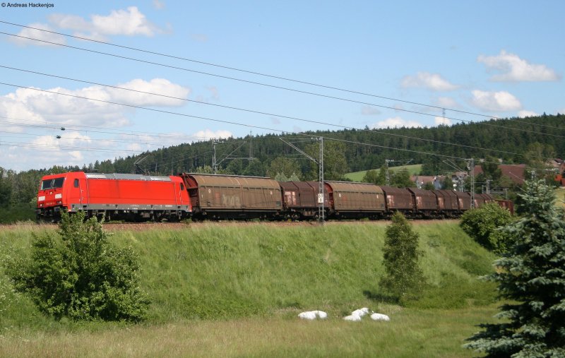 189 045-8 mit einen gemischten Güterzug auf den Weg nach Süden. Die Aufnahme entstand am 18. Juni2008 zwischen Steinbach am Wald und Förtschendorf im Landkreis Kronach.
