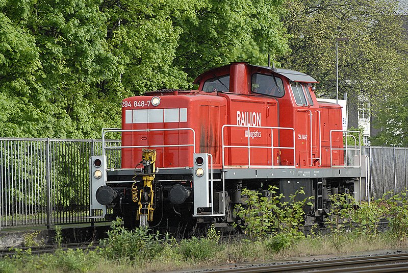 294 848 durchfährt den Duisburger Süden um einen Stahlzug im Hüttenwerk-Krupp-Mannesmann (HKM) abzuholen. 05.05.2008