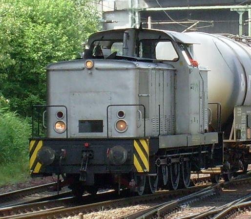 Privatbahn V60 fährt mit Kesselwagen durch Hamburg-Harburg.