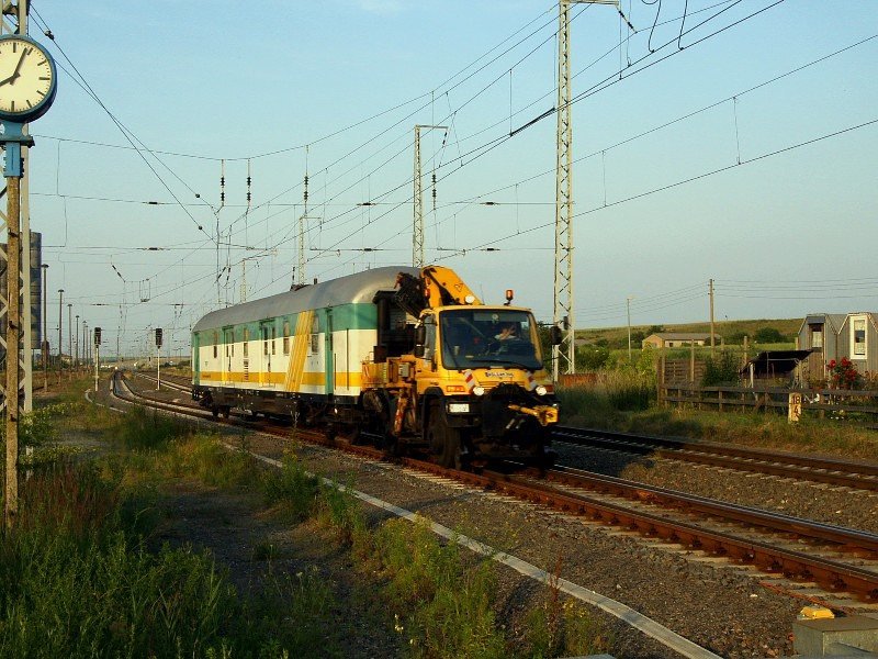 Zweiweg -Unimog mit einem Wagen der KEG in Teutschenthal.18.6.08