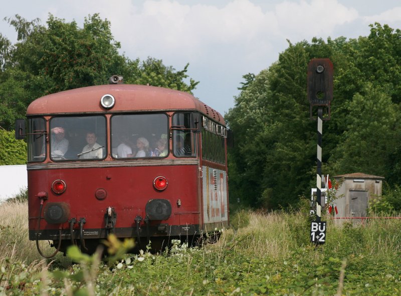 Der Schienbus der Passauer Eisenbahnfreunde auf der Rückfahrt von Mühldorf nach Passau am 21.6.08