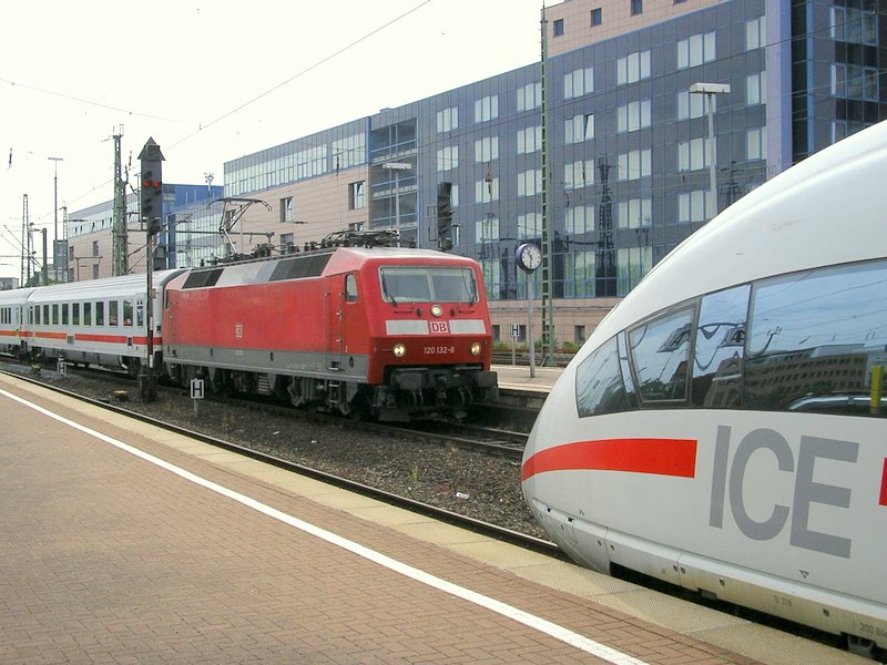 120 132-6 mit IC 2025 nach Frankfurt/Main bei der Einfahrt auf Gleis 10,normalerweise Gleis 11 im Dortmunder Hbf.,Grund war die Weichen-Erneuerung auf Gleis 16.(22.06.2008)