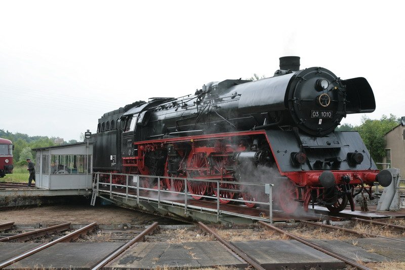 03 1010 war heute zum drehen, Wasser nehmen und bekohlen im BW Hagenow Land zu gast. Hier auf der Drehscheibe von D & D Eisenbahn. Sie zog einen Sonderzug von Halle nach Schwerin und wieder zurück. 28.06.2008