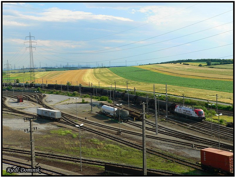 1016 047 fährt mit einem Güterzug in die Einfahrtsgruppe des Wiener Zentralverschiebebahnhof ein. 27.06.2008