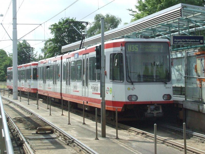 Eine U35 verlässt die Haltestelle Brenscheder Strasse in Bochum in Richtung BO-Hbf und Herne. (20.06.2008)