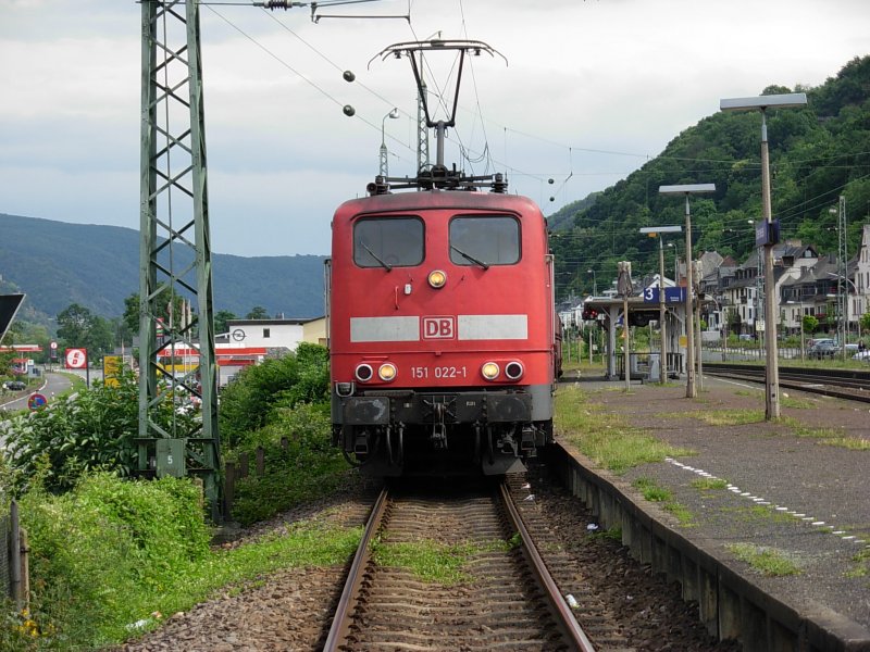 In Ludwigslust steht am Bahnsteig 3 ein Güterzug. Nach kurzem Halt macht die 155 096-1 den Bahnsteig wieder frei. 26.06.2008