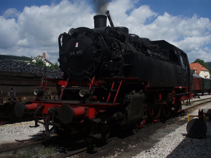 Eine V 10B machte am 24.06.2007 Führestandsmitfahten im Bahnhof Schönheide-Süd.