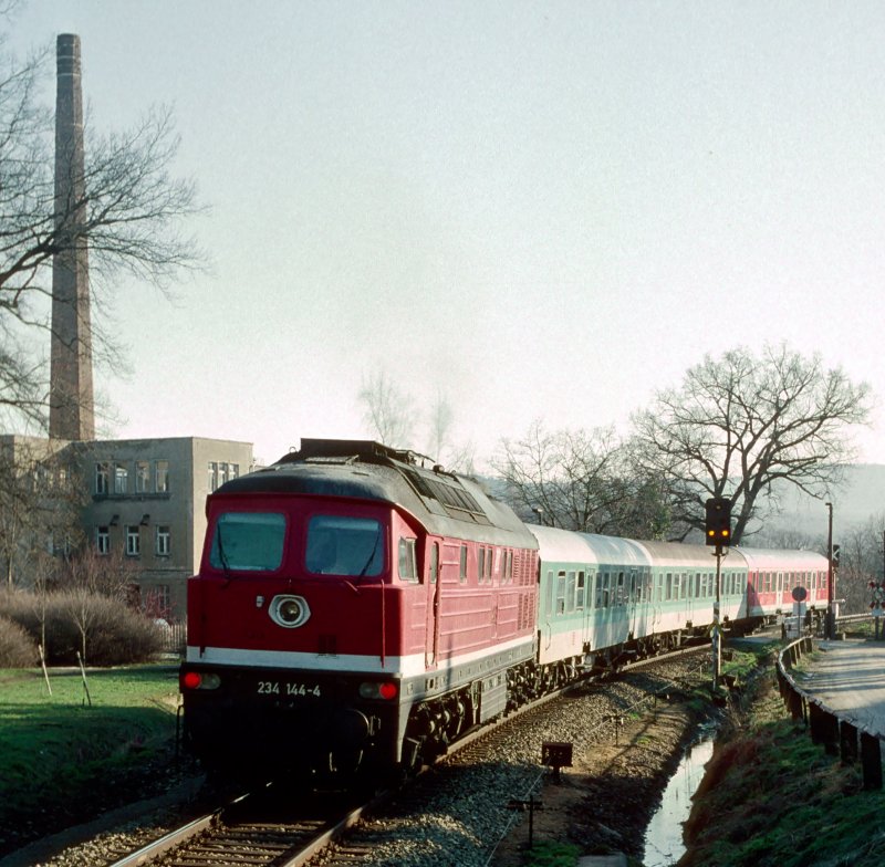 Am 27. Februar 1999 verlaesst 234144 Kamenz mit einer Regionalbahn nach Dresden Hbf.