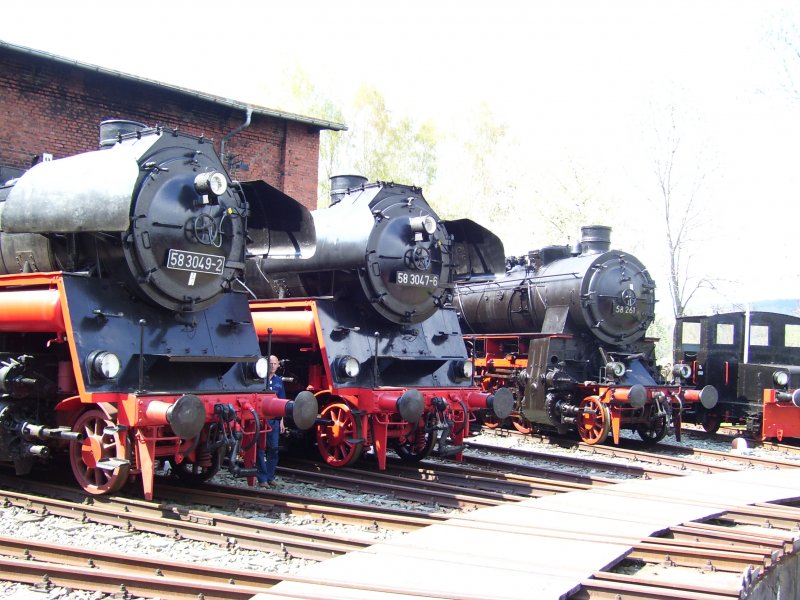 Drei G 12 am 03.05.08 im Eisenbahnmuseum Schwarzenberg. Die beiden Rekos 58 3049, 58 3947 und die altbau 58 261.
