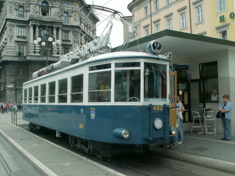 Wagen 402 kommt gerade von Villa Opicina (20 min.Verkehr)und befindet sich kurz vor der Piazza Oberdan.Triest 03.06.08