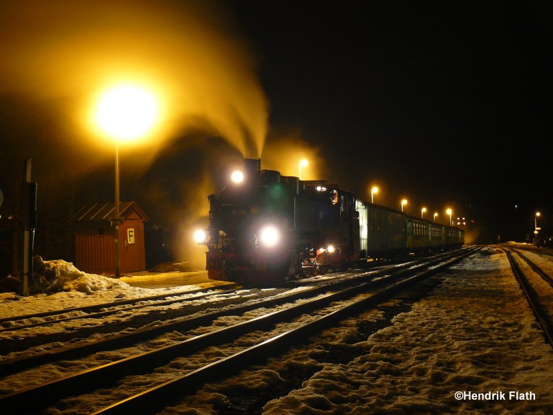 Am Abend des 13.01.2008 wartet 99 786 im Bahnhof Neudorf auf die Ausfahrt.