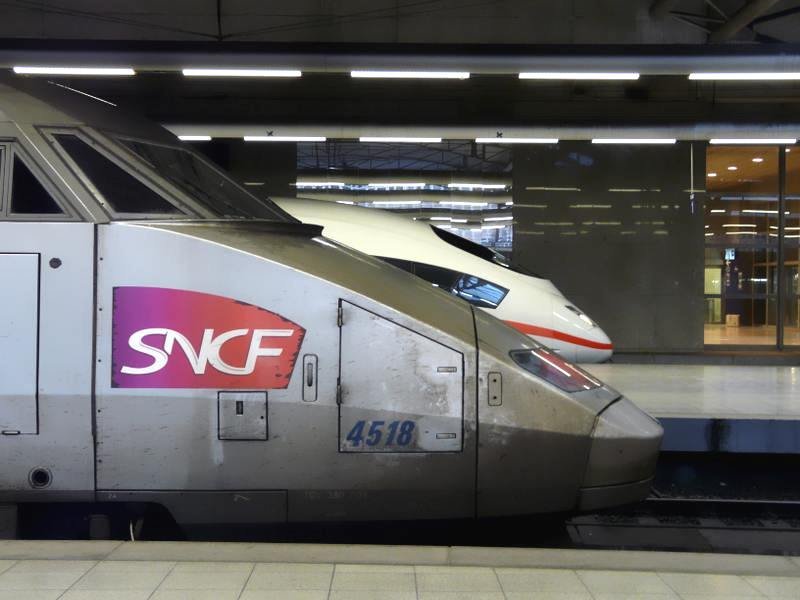 Unterschiedliche Formen bei den Hochgeschwindigkeitszügen. TGV und ICE 3 stehen am 07.03.08 in Bruxelles Midi nebeneinander.