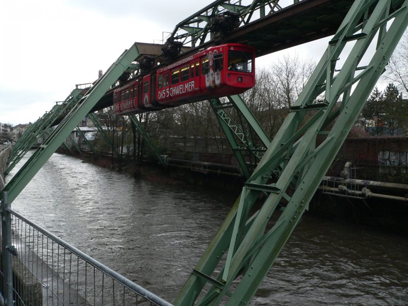 Ausfahrt aus der Station Landgericht, einer schönen, scheinbar original erhaltenen Schwebebahnstation. 21.3.2008