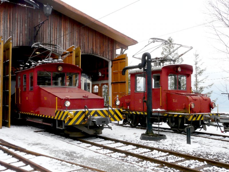 BC - tpf Rangierlok Te 4/4 14 neben dem tpf Rangierlok T 2/2 12 zu Besuch bei der BC in Chaulin am 24.03.2008