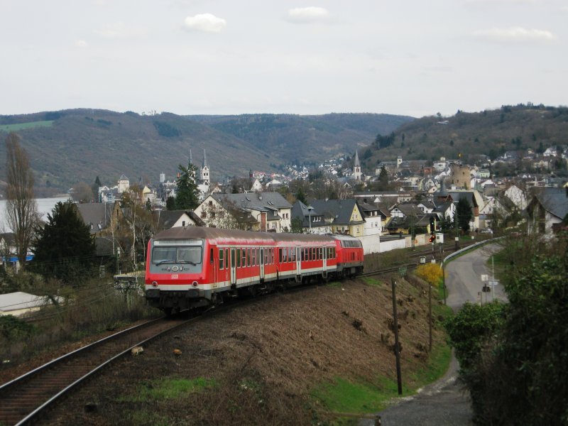 Zu meiner Freude konnte ich völlig unerwartet am 28.03.2008 612 139 als RB 12355 von Koblenz nach Boppard in der Rheinkurve vor Boppard festhalten.