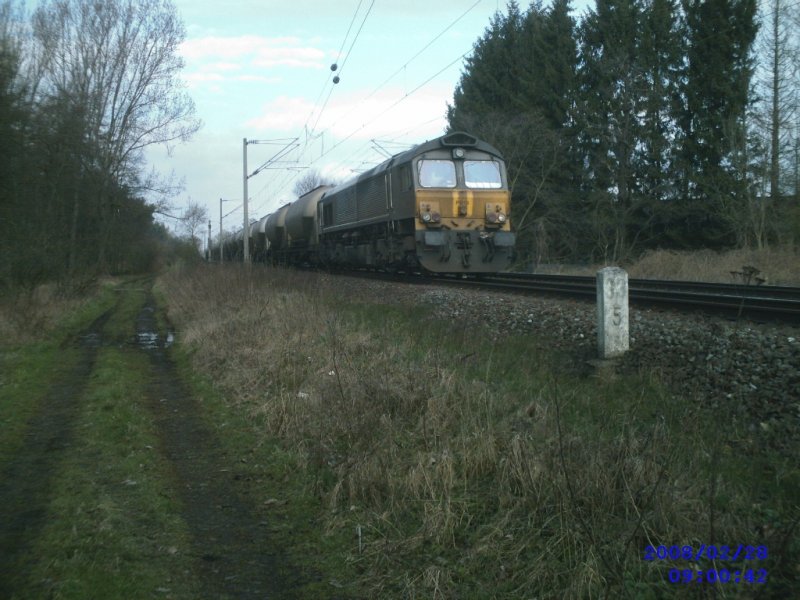 294 573-1 & 362 589-4 passieren zur Vormittagszeit des 25.03.08 Km 28,0 der Rheintalbahn (KBS 702) kur vor Waghäusel mit Fahrtrichtung Graben-Neudorf.