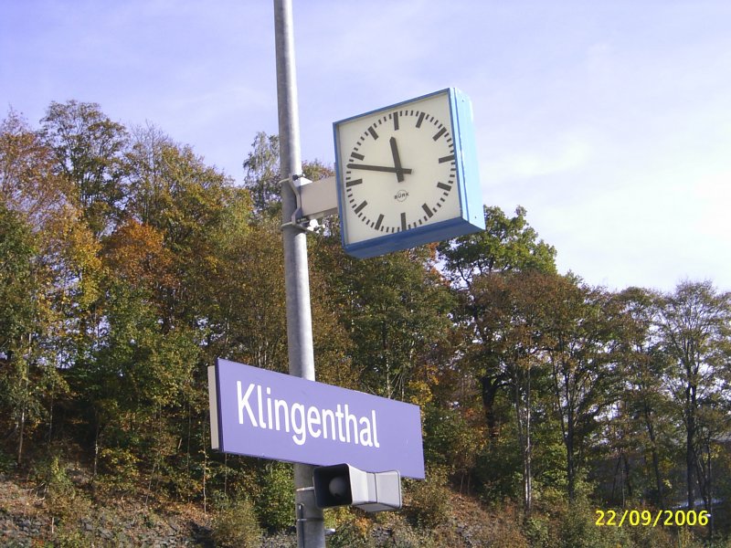 14:20 im Bahnhof Klingenthal. Die Vogtlandbahn nach Zwickau ist soeben ausgefahren.