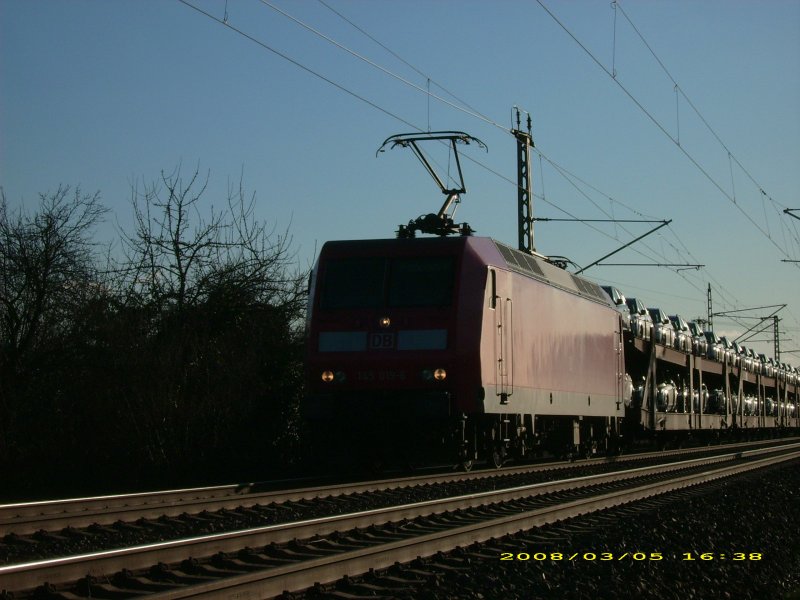 Eine Lok der Baureihe 145 zieht am 05.03.08 einen Güterzug Richtung Berlin durch Gräfenhainichen.