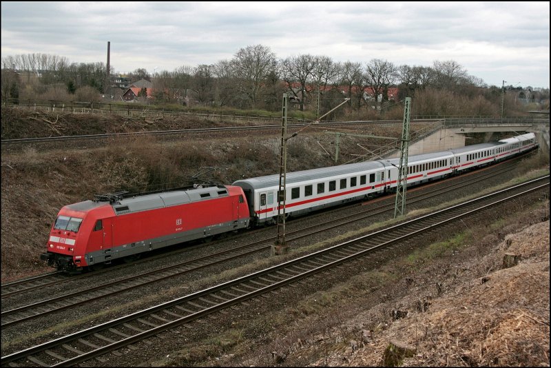 101 034 verbindet mit dem InterCity 2027, von Hamburg-Altona nach Frankfurt(Main)Hauptbahnhof, die Hansestadt mit der Mainmetropole und wird bald den Bahnhof Witten durchfahren. (09.03.2008)
