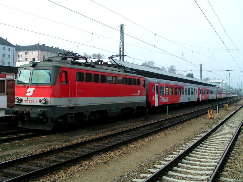1142 590-7 mit R 5917 abfahrtbereit, Passau Hbf; 080309