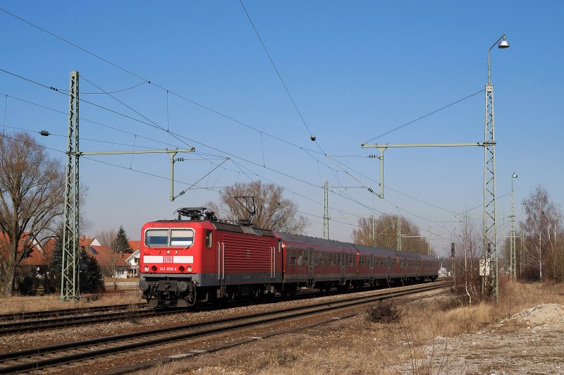 Qualität durchfährt Biebrich ;-): 143 923 mit einem Regionalexpress nach Koblenz bei der Bahnhofsdurchfahrt, 08.03.08.