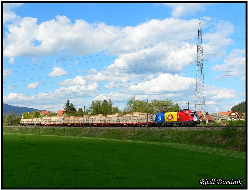 Den Schnittholzzug aus Leoben Göss nach Villach zog am 8 Mai die 1116 056. (Knittelfeld)